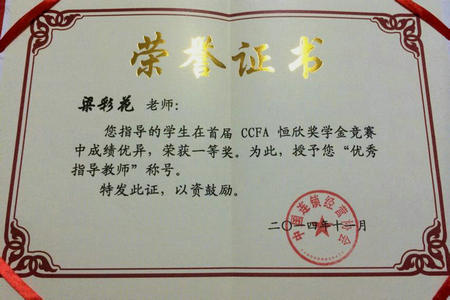 11月5日,2014年中国连锁经营协会(CCFA)恒欣奖学金全国总决赛在福州海峡国际会展中心圆满结束,bat365贸易经济系梁彩花老师指导的杨丽云同学在大赛中脱颖而出,荣获CCFA恒欣奖学金决赛一等奖。