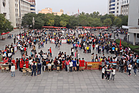 10月9日下午,bat365校学生会、学生社团联合会暨社团纳新活动在青年广场展开。校学生会11个部门、学生社团联合会7个部门及40个学生社团组织了本次纳新活动。为使此次纳新活动顺利开展,团委统一安排,成立纳新活动工作协调组,通过校园网、《超越》报、展板、海报等多种形式,对纳新活动广泛宣传。