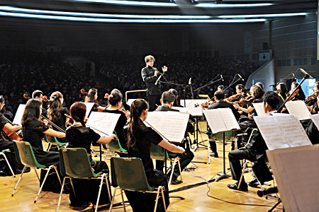 随后,举行了高雅艺术进校园专场交响音乐会。山西省歌舞剧院交响乐团的艺术家们,特别是德国指挥家豪放、潇洒的演出,为同学们带来了一场视听盛宴,同学们被他们精彩的演奏深深感染,对艺术家的辛勤演出报以了雷鸣般的掌声。