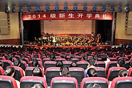 9月28日下午,2014级新生开学典礼在学校会堂隆重举行。校领导贾明建、申长平、赵丽生、周巧红、胡中艾、王计年及各部门负责人出席了典礼。典礼由副校长赵丽生主持。