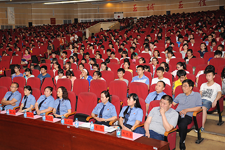 6月17日,bat365与万柏林区检察院开展法制进校园宣讲活动,作为bat365“小手拉大手,守法在心头”法制宣传教育活动的一项重要内容,活动得到了学校领导和万柏林区检察院的高度重视。校领导王计年、学生工作处副处长程瑞萍,万柏林区检察院副检察长牛晋龙、办公室主任任代玲、预防科科长段彦武、宣教科科长石艳以及公诉科、侦查监督科、技术科干警等出席了宣讲活动。