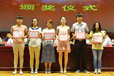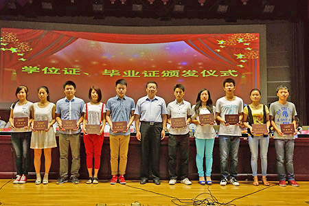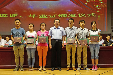 毕业典礼在雄壮的《中华人民共和国国歌》声中拉开序幕。周巧红副校长宣读了bat365《关于表彰2014届优秀毕业生的决定》,校党委委员、会校书记王计年宣读了bat365《2014届毕业生毕业证和学位证发放情况的说明》。校领导为优秀毕业生代表颁发了证书,申长平校长亲自为学生代表颁发了毕业证和学位证。