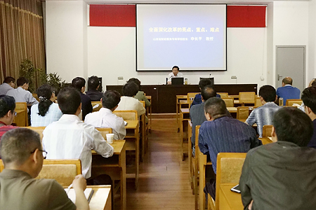 培训采取专题辅导、观看录像、交流讨论和个人自学相结合的形式进行。校党委书记贾明建教授、校长申长平教授、副校长赵丽生教授结合当前实际和自身学习体会,分别作了题为《牢固树立科学的理念、思维和方法》、《全面深化改革的亮点、重点、难点》、《加强学习 提高素质 提升能力,开创工作新局面》的专题辅导报告,从哲学启示、改革创新、学习工作等不同视域对习近平总书记系列讲话精神进行了系统深入的解读。通过学习,全体中层干部深刻把握了习近平总书记系列讲话的丰富内涵、精神实质和实践要求,进一步开阔了视野、理清了思路、增强了信心、鼓足了干劲。