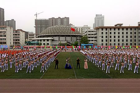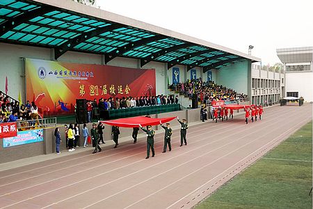 25日上午8时,校运会开幕式隆重举行。校领导贾明建、赵丽生、周巧红、胡中艾、王计年及相关部门负责人出席开幕式。开幕式由副校长胡中艾主持。在雄壮的运动员进行曲中,国旗方队、校旗方队、会旗方队、军乐团方队、彩旗方队以及裁判员、各系运动员方队依序通过主席台接受检阅。运动员裁判员入场后举行了庄严的升国旗仪式。