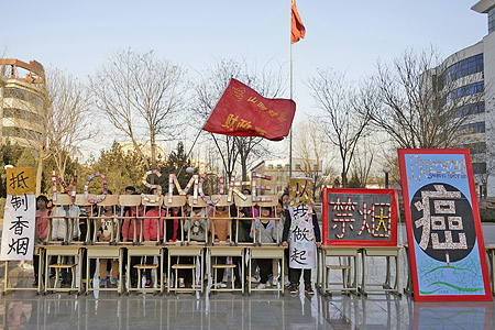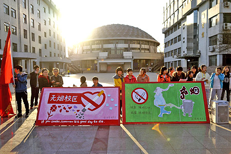 下午五点,青年广场人头攒动,学生来往流连于各种形式的宣传展板和海报前面,签名、合影,用各自的方式积极参与到其中,让“以身作则,从我做起”的禁烟口号更为深入人心。
