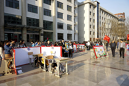 在青年广场的现场,同学们用展板简洁明了的展示了地震常识,多媒体课件图文并茂的展示了地震的危害,而地震应急演练情景剧则更生动的演示了逃生自救的方法。现场学生踊跃,积极参与,气氛热烈的讨论着、学习着、交流着地震知识,大家都感到受益匪浅。