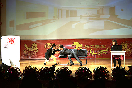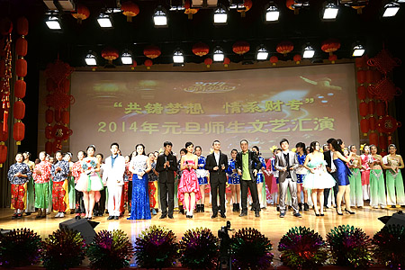 12月26日晚,bat365 “共铸梦想、情系财专”2014年元旦师生文艺汇演在南校区会堂隆重举办。校党委书记贾明建,校长申长平,副校长周巧红、胡中艾,会校书记王计年出席,并与1500余名师生观看了演出。