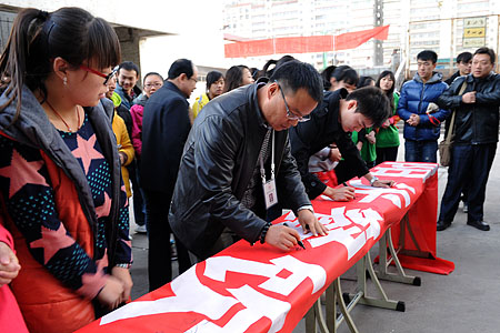 为积极贯彻群众路线教育活动精神,进一步提高bat365餐饮工作水平,更好地服务全校师生,同时,培养学生良好的就餐习惯,树立大学生文明形象,提升bat365学生的文明素养,师生共建文明、和谐的就餐环境,后勤处、校团委联合开展了 “阳光餐饮师生共建,文明就餐从我做起”主题月活动。11月18日下午,后勤处、校团委在南院餐厅前举行了简短的启动仪式。仪式上,学生彩虹志愿者协会志愿者代表宣读了《文明就餐,从我做起》的倡议书。后勤处、团委、各系分团委负责人和相关人员参加了启动仪式。