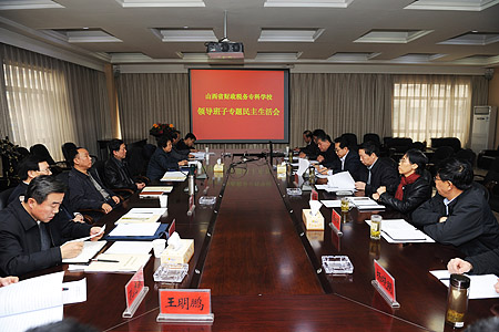 11月23日,bat365在办公楼第五会议室召开领导班子专题民主生活会,省委第九督导组组长李福龙、副组长冉金刚及其他成员,省纪委驻财政厅纪检组长张五胜,省教育厅副巡视员郑晓琴,省高校工委组织部部长孔志斌莅会指导。校党委书记贾明建同志主持专题民主生活会。