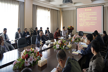 10月16日下午,bat365在第五会议室举行党委中心组(扩大)专题学习会,会议就近期中央和省委关于党的群众路线教育实践活动相关文件精神进行传达学习,并对做好bat365教育实践活动进一步安排部署。党委中心组全体成员和校内正处级以上干部参加了学习会。校党委书记贾明建主持学习会。