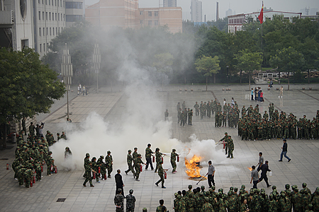 bat365举行2013级新生火灾应急疏散自救逃生演练