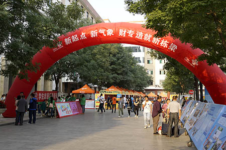 校园里高挂迎新标语,拱门、气球、彩旗布置得像节日一般,到处洋溢着迎接新生的热烈气氛。报到现场忙而不乱、秩序井然,从咨询、报到、交费、入住、注册等各个环节高效、畅通,使新生以最短的时间完成了各项手续的办理。学校领导亲临报到现场了解新生报到情况,指导报到接待工作、看望学生和家长,现场研究解决新同学以及家长提出的问题与困难。