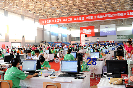 高职会计技能赛项本次赛项的竞赛项目由会计业务手工处理环节和会计业务信息化处理环节两个环节组成。比赛始终在紧张激烈的氛围中进行,各队选手上演了一场逐鹿职场、比拼技能的职业演习,展示了一堂生动的高职会计实践教学课。除主赛场的竞赛活动外,还组织了展示体验、观摩体验和高峰论坛活动。合作企业展示了会计教育的最新理念与产品并组织了体验活动;行业、企业的职业能手进行了点钞、珠心算、小键盘录入等项目的表演;会计学界名流、高职教育专家、企业成功人士就“会计文化、企业文化、校园文化的传承与创新”开展了高峰论坛。