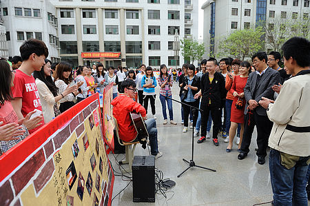 4月16日下午,2013年“缤纷社团,多彩校园”主题社团风采展示活动在教学楼前广场举行,全校30余个学生社团设置展台,通过多种形式展示各自社团的魅力和风采,精心设计各种活动与广大同学进行互动交流。校党委委员、会校书记王计年,校团委相关老师共同观看了风采展示活动。
