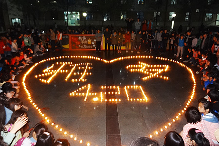 4月23日晚,bat365学生会、学生社团联合会、旅游管理系学生分会及部分学生社团共同在教学楼前广场举行为四川雅安地震灾区祈福活动。