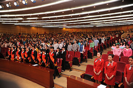 5月4日下午,bat365纪念五四运动94周年暨表彰大会在南校区会堂隆重举行。副校长赵丽生、周巧红,会校书记王计年等校领导及学校相关部门负责人出席大会,并为获奖集体和个人代表颁奖。受表彰的先进集体、个人及全校团员青年代表共1500余人参加表彰大会。大会由副校长周巧红主持。