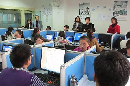 26日,经济信息系主任孔德瑾、副主任程瑞萍、孙波、教研室主任和相关班主任来到高新区的安博思软校外实训基地看望指导实习学生。