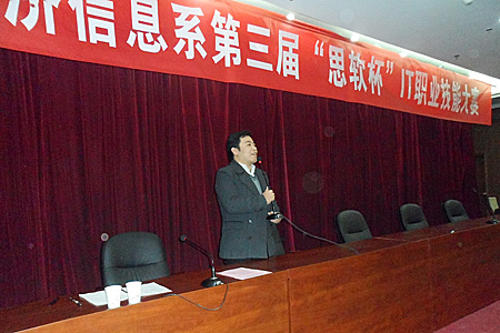 经济信息系主任孔德瑾对大赛进行了总结,他指出IT职业技能大赛举办三年来,在专业改革、创新、发展和建设方面起到了积极的促进作用。他强调,要坚持以服务为宗旨、以就业为导向的发展方向,深化“校企合作、工学结合、顶岗实习”方面的改革,构建适应需求、有机衔接、多元立交的信息专业教育及就业体系。