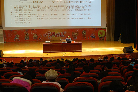 讲座中,玄武先生从文学的价值入题,旁征博引,用渊博的知识生动形象的解析了三国时期的时代背景、经济状况、经济人物的特点,并详细讲解了集勇武、忠义、智谋于一身的三国蜀国大将关羽性格特点和人生业绩,使广大同学了解到一个真实三国时代的经济、社会状况。玄武先生诙谐幽默的精彩讲座博得观众热烈掌声。