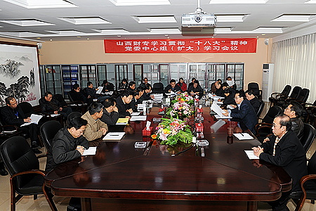 11月21日下午,党委中心组于第五会议室召开扩大学习会议,传达学习贯彻“十八大”精神,校领导、校党委委员、中层干部(正职)、党总支(直属支部)书记参加了会议。