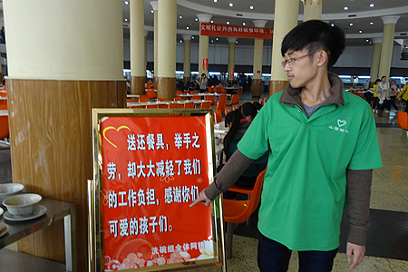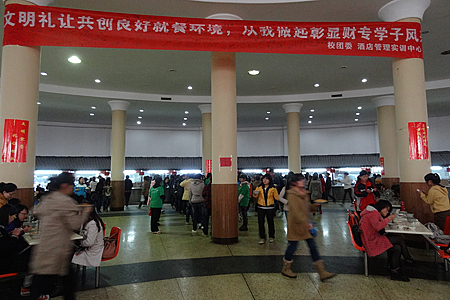 活动现场开展了“文明礼让共创良好就餐环境,从我做起彰显财专学子风采”主题签名。同时,学生志愿者在餐厅张贴了文明就餐标语,利用录音形式,在学生餐厅循环播放文明就餐倡议书。学生志愿者身影活跃在餐厅的各个角落,监督同学们自觉排队,有序就餐,协助餐厅人员回收餐具,提醒同学们用餐完毕后自觉将餐具送到回收处。通过学生志愿者辛勤努力,学生餐厅的就餐秩序得到了明显改善,文明就餐的良好氛围正在逐步形成。