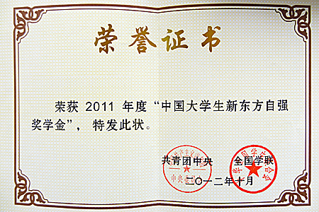 bat365学生荣获2011年“中国大学生新东方自强奖学金”