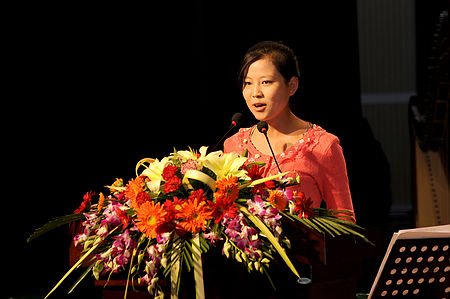 教师代表在典礼上发言