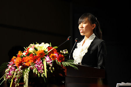 新生代表在典礼上发言