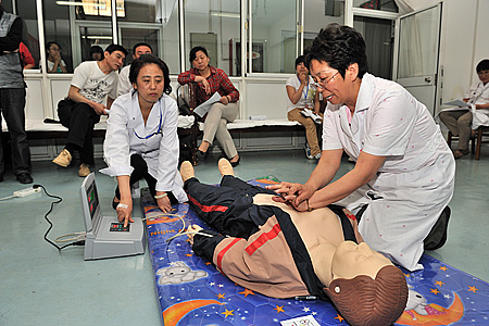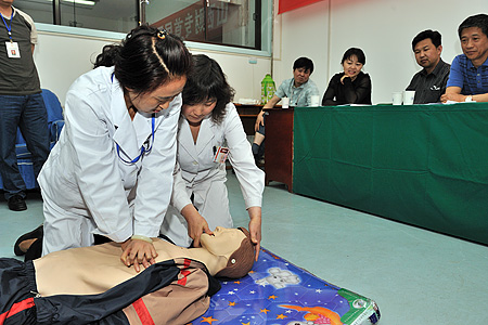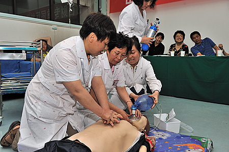 此次比武主要目的是考察bat365卫生所的应急处置能力,全面提升医护人员的紧急医疗救援水平,为全校师生员工健康保驾护航;项目有密闭式静脉输液、鼻导管吸氧、清点药片、心肺复苏(双人心肺复苏、团队心肺复苏、单人心肺复苏)等。参加比武人员操作规范,动作娴熟,配合默契,反应快捷,取得了良好成绩,达到了预期效果。