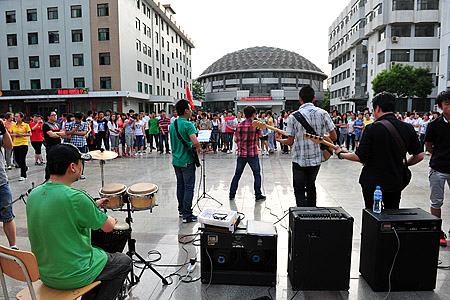 5月24日下午,2012年“缤纷社团,多彩校园”主题社团风采展示活动在教学楼前广场举行,全校30余个学生社团置设展台,通过各种形式展示自己社团的魅力和风采,并精心设计各种活动与广大同学进行互动交流。校党委委员、会校书记王计年,学生服务与管理中心主任张文华和校团委、系分团委相关老师共同观看了风采展示活动。