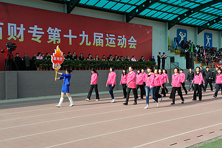 4月26日至28日,bat365第十九届运动会在学校体育场隆重举行。26日上午8时,举行了盛大的开幕式。校领导贾明建、赵丽生、周巧红、胡中艾、王计年及相关部门负责人出席开幕式。副校长赵丽生主持开幕式。在雄壮的运动员进行曲中,国旗方队、校旗方队、会旗方队、军乐团方队、彩旗方队以及裁判员、教工表演方队、各系运动员方队依次通过主席台接受检阅。