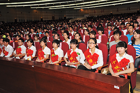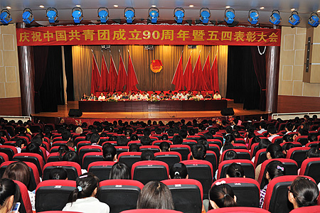 5月4日下午,bat365庆祝中国共青团成立90周年暨五四表彰大会在学校报告厅隆重举行。校长申长平,副校长赵丽生、周巧红、胡中艾,会校书记王计年等校领导及学校相关部门负责人、各系行政副主任出席大会,受表彰的先进集体、个人及全校团员青年代表共1500余人参加了表彰大会。大会由副校长赵丽生主持。