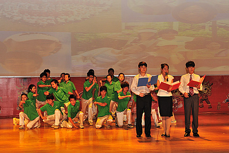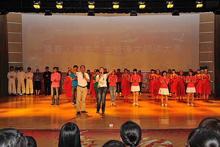 比赛节目紧扣主题,编排立意新颖,形式多样,内容丰富,不仅包含了单人、双人、多人朗诵形式,而且朗诵过程中穿插了舞蹈、情景剧的配合。参赛选手精神饱满,情真意切,朗诵肢体语言丰富,感染力强。声情并茂的朗诵使得整场比赛高潮迭起,精彩纷呈,赢得了现场观众阵阵掌声。最后,谢斌、段凌燕老师演唱的歌曲《光荣啊,中国共青团》将整场比赛推向高潮,在全场观众起立共同高唱团歌声中,比赛圆满结束。