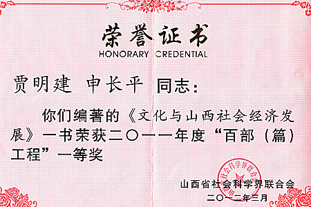 3月26日,山西省社会科学界联合会召开会议,对2011年度获奖成果进行了表彰。由bat365党委书记贾明建、校长申长平同志等编著的《文化与山西社会经济发展》一书荣获2011年度“百部(篇)工程”一等奖,受到会议表彰。
