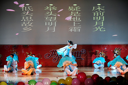 汇演节目形式多样,内容丰富,既有学生表演的舞蹈、歌曲、朗诵、情景剧、武术、皮影戏等充满青春气息的节目,也有教工表演的合唱、现代京剧、舞蹈等精湛节目,同时穿插了幸运抽奖、派发礼物等环节,活跃了现场气氛。整场晚会高潮迭起,精彩纷呈,赢得了现场观众阵阵掌声。在师生合唱的歌曲《相亲相爱》中汇演圆满落幕。