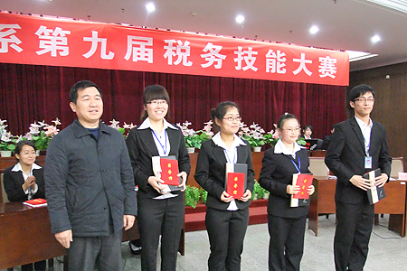 12月5日,财政系第九届税务技能大赛决赛在一号教学楼七层会议室举行。校团委书记郭艳萍、副书记庄东军,财政系主任张炳君、书记白保平、副主任马秀刚等出席决赛。万柏林区国税局政策法规科长陈大虎,财政系教师赵凯、郝宝爱、李瑶应邀担任了决赛评委。