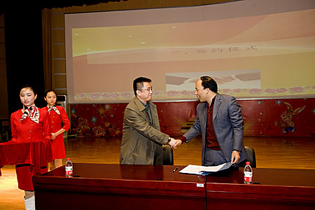 赵丽生副校长首先代表学校致辞,经济信息系孔德瑾主任与到场的十余家企业代表签订了校企合作意向书,山西思软科技有限公司赵鹏总经理与赵丽生副校长互授牌匾。
