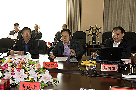 bat365书记贾明建代表学校对来访院校领导及老师表示了热烈欢迎。江苏财经职业技术学院书记吴兆方就此次来访目的、交流内容等作了讲话。bat365申长平校长致欢迎词,并就学校办学理念、办学思路,办学特色、内涵建设等方面作了讲话。赵丽生副校长介绍了学校的基本情况,并主要就bat365专业改革与建设、师资队伍建设、课程建设等方面内容作了详细介绍。