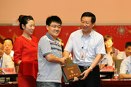 胡中艾副校长宣读了bat365《2011届毕业生毕业证和学位证发放情况的说明》,申长平校长亲自为学生代表颁发了毕业证和学位证。