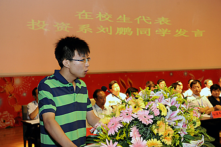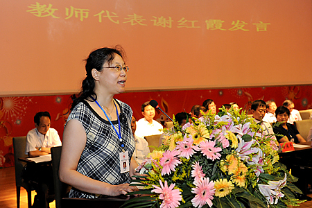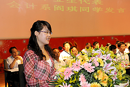 典礼上,谢红霞老师、毕业生阎琪、在校生刘鹏分别代表教师、毕业生、在校生作了发言。