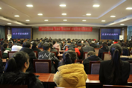 12月11日,信息学院第三届“优逸客-浩泰思特杯”IT职业技能大赛决赛在南校区一号教学楼七层会议室隆重举行。校团委书记方建英、山西优逸客UI专家梁维岩、浩泰思特教学总监温海英及我院领导老师学生共计260余人观看了比赛。