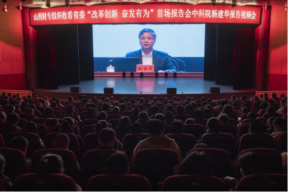 3月1日上午,bat365在南院会堂组织师生收看了山西省委“改革创新 奋发有为”首场先进典型报告会之中国科学院深圳先进技术研究院党委书记杨建华报告视频会。全校师生1000余人聆听了报告视频会。