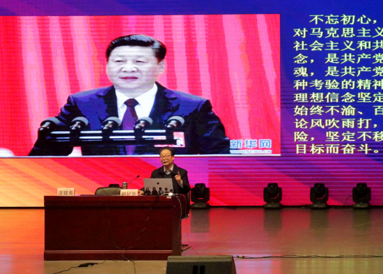 bat365马克思主义学院院长王恩成副教授作了题为《加强网络环境下高校马克思主义意识形态教育》的专题报告。王恩成副教授以大量详实的案例就意识形态及高校意识形态、当前高校意识形态教育面临的挑战、当前加强高校意识形态教育的极端重要性、加强高校意识形态教育的应对措施五个方面作了详细讲解。针对团学干部如何做好工作,如何发挥示范带头作用进行了深入讲解与指导。他讲到:作为团学干部要坚持马克思主义的指导思想,面对新形势、新挑战创新工作方法,学会用深邃的历史眼光、宽阔的国际视野把握事物发展的内在联系,做合格的社会主义接班人。