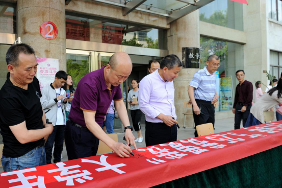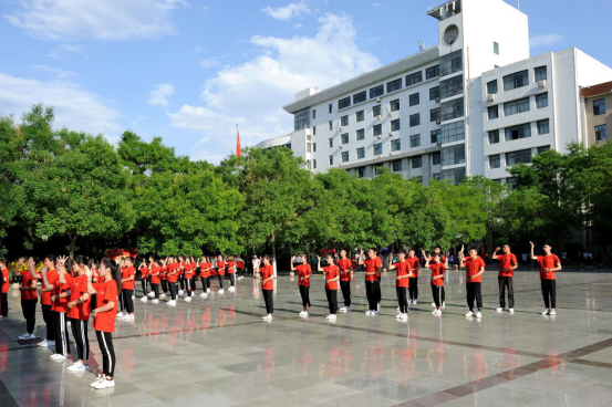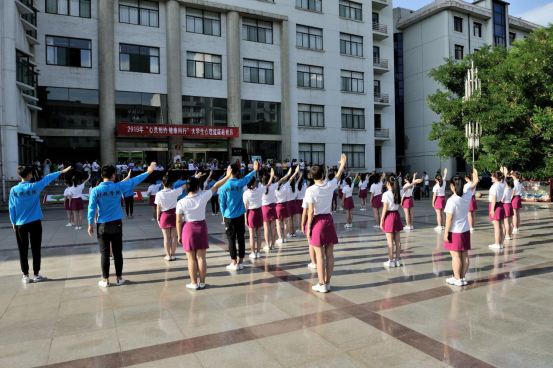 为迎接“5.25”全国大学生心理健康日,深入推进bat365心理健康教育工作,不断提高学生心理健康水平,促进学生健康成长成才,5月24日下午,以“心灵相约 健康同行”为主题的手语操展演在教学楼前青年广场举行。副校长杨晓明、学校办公室主任董国富、学生工作处处长杜斐、校团委书记方建英和各学院党总支书记观看了展演。