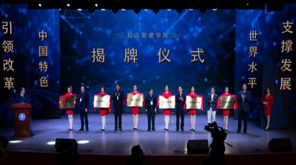 为贯彻国家“德行为本、能力为重、工学结合、校企合作、知行合一、持续发展”的高职教育理念,进一步加强与行业企业的深度融合合作发展,大会进行了与服务政府、合作行业企业签约和联建学院、产教融合校企合作协同创新中心揭牌仪式。副校长李锦元主持了仪式。校长赵丽生代表学校与省转型综改示范区、太原市万柏林区、清徐县、介休市4个地方政府签署了服务地方经济战略合作协议,与山西省省级政府采购中心、山西省注册评估师协会、晋商银行股份有限公司、山西省农业信贷融资担保有限公司、北京神州数码云科信息技术有限公司、深信服科技股份有限公司、永辉超市股份有限公司、深圳百果园实业发展有限公司、浙江衡信教育科技有限公司、山西航天信息有限公司、昌陆投资集团有限公司、中联企业管理集团、新道科技股份有限公司、厦门网中网科技有限公司、厦门科云信息科技有限公司、山西晋祠宾馆、山西商务国际旅行社有限公司、中教畅想(北京)科技有限公司、山西文华国际旅行社有限公司等19个行业企业签署了产教融合校企合作深度战略合作框架协议;为6个校企联建学院航信财税学院、用友新道会计学院、永辉零售学院、晋商金融学院、浪潮信息学院和晋祠旅游学院和10余个企业共建协同创新实训中心揭牌。