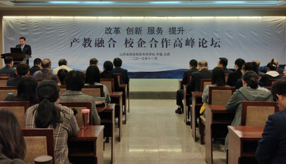 当日下午,学校还举办了“改革•创新•服务•提升”产教融合、校企合作高峰论坛,来自省内外嘉宾、高校代表、行业企业代表、校友代表和学校全体教师参加。bat365副校长李赟鹏博士主持了论坛。论坛上,江苏财经职业技术学院院长程淮中教授就《信息技术变革赋能会计专业转型发展》、中国民生投资集团副总裁王团维就《新经济新业态新职教》、中联资产评估集团有限公司董事局主席王子林研究员就《智慧财经产教深度融合与“双高”建设》、中国连锁经营协会副秘书长郭玉金就《大数据时代下的连锁业人才需求》、山西黎氏阁商贸有限公司董事长张红生就《新商业、新消费、新增长—社区商业让生活更美好》、山西同方知网总经理助理教育事业部总经理王军就《中国知网学科大数据助力财专“双高”建设》、新道科技股份有限公司总裁杨晓柏就《兴建产业学院培养数字人才》等进行了交流。