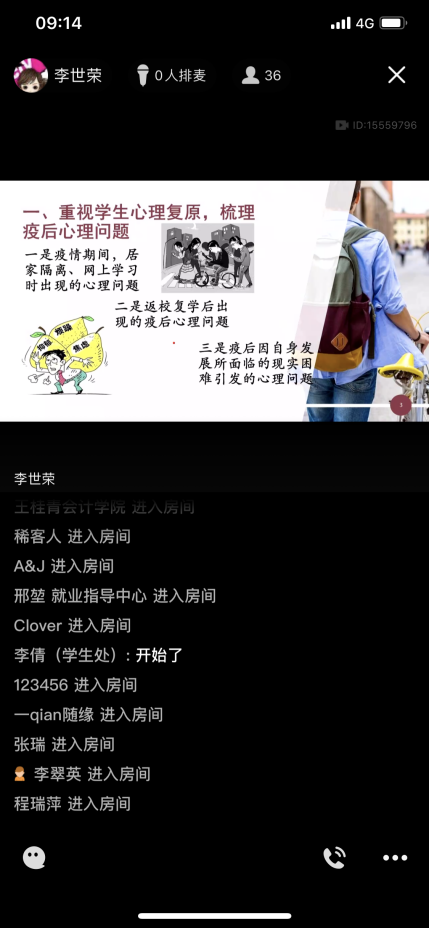 培训分两个阶段进行。第一阶段为bat365马克思主义学院心理健康教研室主任李世荣老师做题为《学生返校复学后辅导员疫后心理工作要点》的培训。培训中,李老师围绕防疫期学生返校复学后心理特点,讲述了“不同类别学生心理处置方案”,提出共性问题团体化,个性问题个案化,对如何做好防疫期学生返校复学后心理危机的预防、处置和干预做了深入、细致地指导。