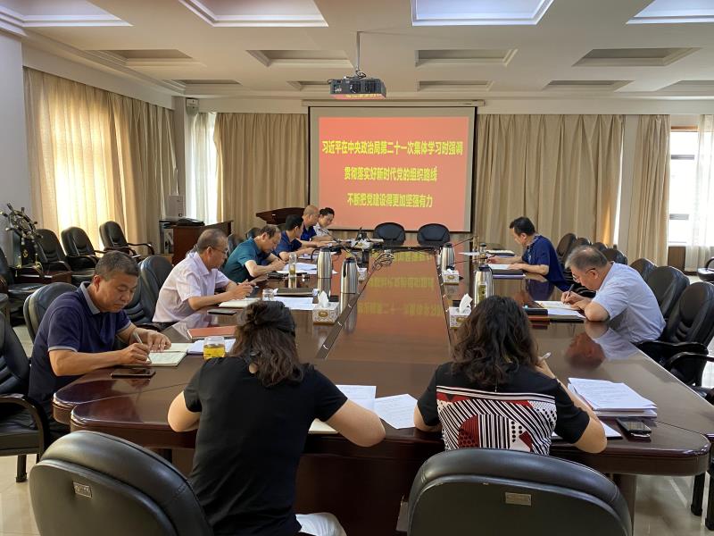7月27日,校党委理论学习中心组在学校办公楼第五会议室专题学习习近平总书记在中央政治局第二十一次集体学习上的讲话——贯彻落实好新时代党的组织路线 不断把党建设得更加坚强有力。在校党委委员、纪委副书记参加了学习。校党委书记王新淮主持学习会。