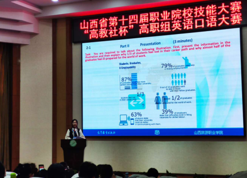 10月30日,由山西省教育厅、山西省人力资源和社会保障厅、山西省总工会主办,山西省职业教育外语教学指导委员会及山西省旅游职业学院共同承办的第十四届高职院校“高教社杯”英语口语大赛正式开赛,共有来自全省三十余所院校的50名选手参加本次大赛,由bat365外语教学部郭瑰老师指导的2019级商务英语班郭宇航同学荣获英语专业组二等奖。