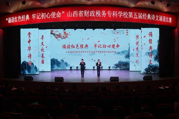 赏中华诗词,寻文化基因,诵读红色经典,牢记初心使命。比赛现场气氛热烈,参赛选手为在场观众演绎了一场中华经典诗文的视听盛宴。他们或声情并茂,或慷慨激昂,用真情展现出中华经典的神韵和传统文化的魅力。经过激烈角逐,信息学院选送的《战地日记》荣获一等奖,会计学院选送的《与妻书》、信息学院选送的《吹号者》以及商学院选送的《相信》荣获二等奖,旅游学院选送的《为了可爱的中国》、信息学院选送的《春江花月夜》、财税学院选送的《将进酒》、金融学院选送的《琵琶行》《甲午》以及商学院选送的《盛世中国》荣获三等奖。